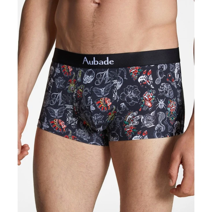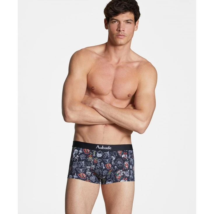 Aubade et Baptiste Giabiconi signent une collaboration sexy aux imprimés modernes, tout en proposant une nouvelle forme de boxer plus courte et plus mode que la traditionnelle : le Trunk.