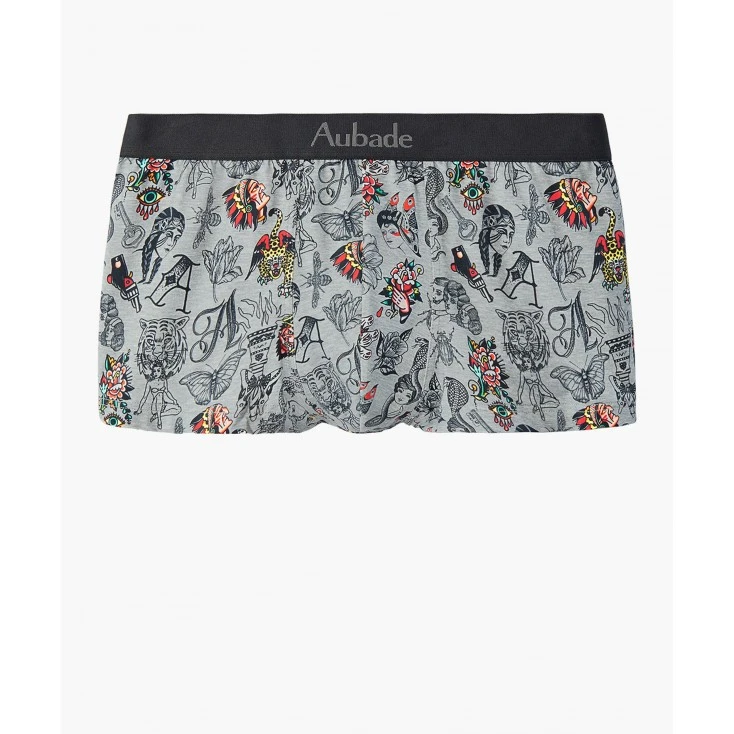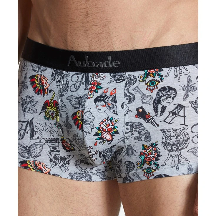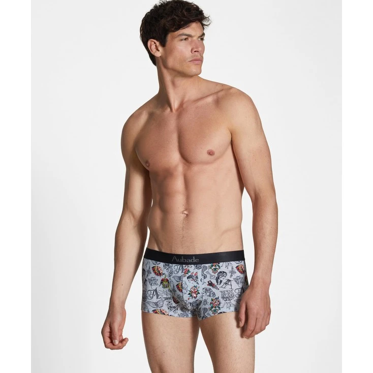 Aubade réinvente sa collection Homme autour du tatouage et l’étoffe d’une nouvelle forme, le Trunk ; ici dans sa version grise, 100% coton afin de respecter toutes les peaux même les plus sensibles.