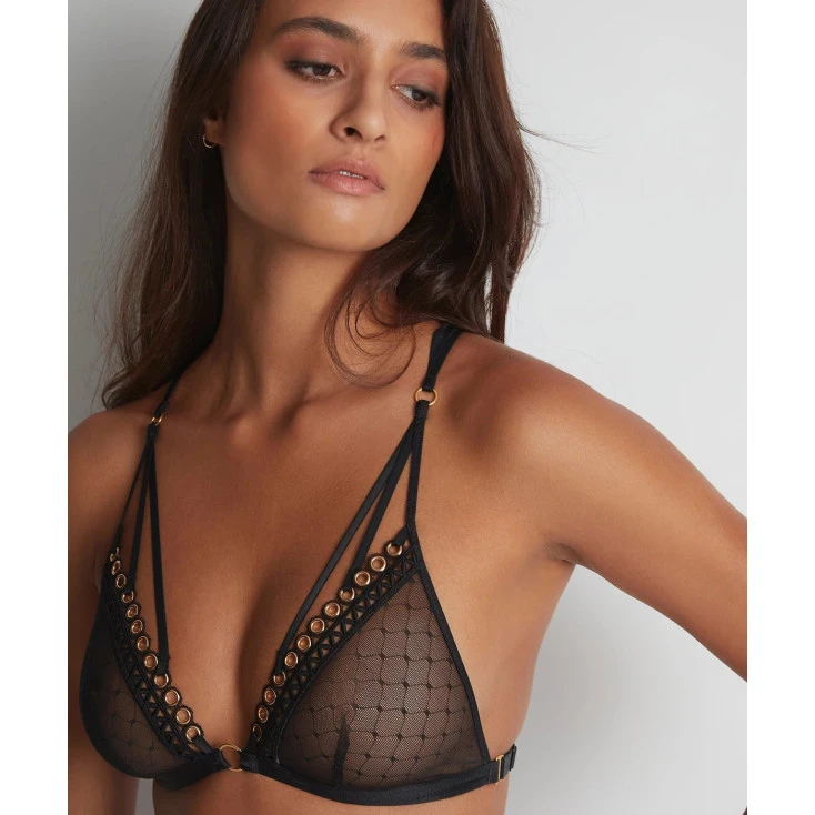 Le soutien-gorge triangle enveloppe la poitrine dans un écrin en tulle fin et délicat, pour la couvrir d’une transparence exquise décorée de motifs fantaisie séduisants.