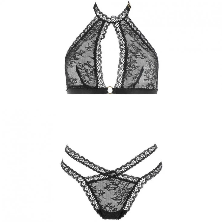 Romantique et délicat, l’ensemble ‘Frisson Ephémère’ a été imaginé par la Maison Aubade pour parer votre silhouette sensuelle d’une fine dentelle et de brides graphiques à l’esprit délicieusement bondage.