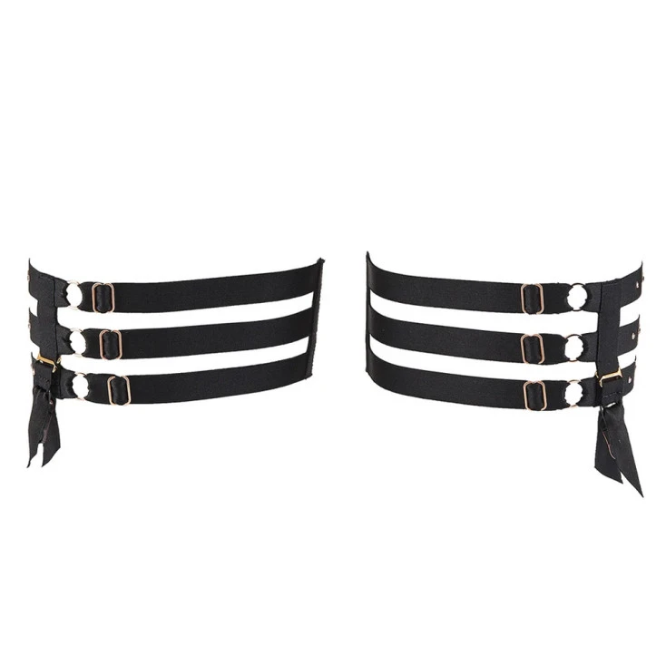 Les accessoires de lingerie coquine enlacent le tour de cuisse avec délicatesse, tandis que les boucles de réglage et leur revêtement doré apporteront une touche de brillance captivante.