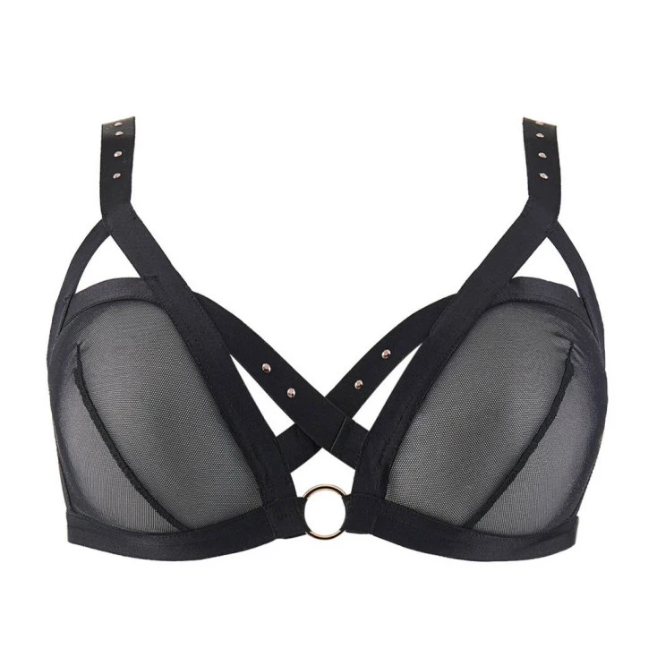 Les bonnets sans armatures du soutien-gorge ‘Rencontre Anonyme’ assurent un galbe naturel, tandis que des petits clous agrémentent les lanières pour vous faire briller de mille feux.