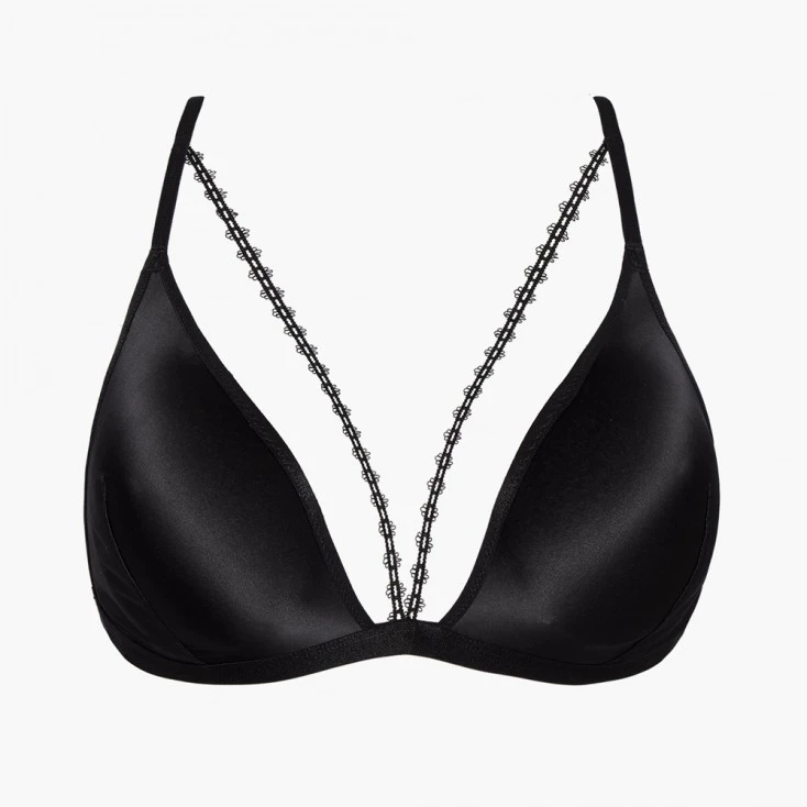Elégant et sophistiqué, le soutien-gorge sans armatures associe la sensualité du satin au romantisme de la guipure pour un galbe naturel du plus bel effet.