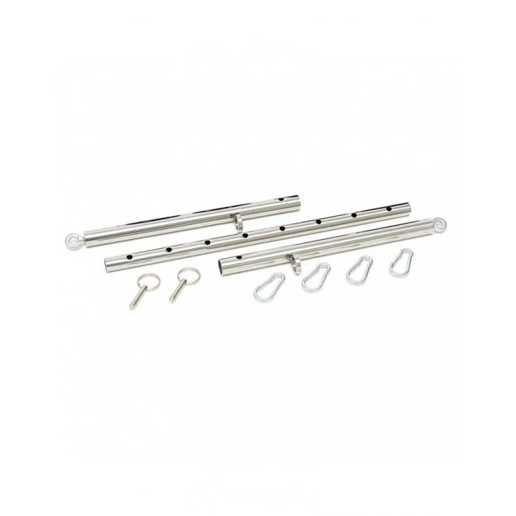 Composée d’acier inoxydable de haute qualité, cette barre d’écartement dispose de 4 anneaux afin d’y attacher facilement votre partenaire.