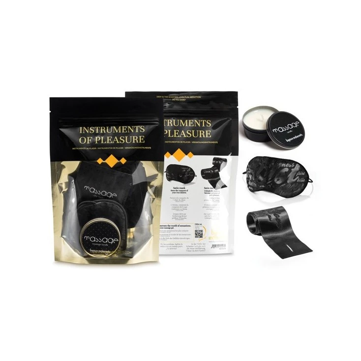 Contenu de la version orange : bougie de massage (35g), menottes en satin, masque en satin.