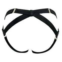 Les élastiques s’entrecroisent et s’emparent de la taille en la contournant avec une sensualité rare, apportant ainsi une touche bondage à la lingerie torride. Les brides satinées enlacent même le cou en prenant des allures de harnais espiègle.