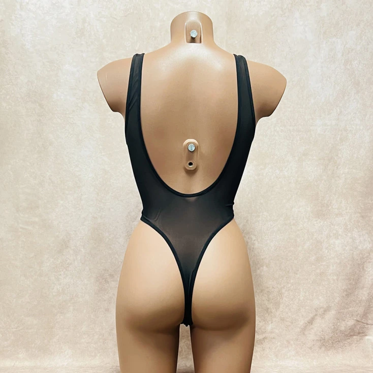 Le body string en tulle noir allie à la perfection zones de transparence sensuelle et décolleté vertigineux monté d’un laçage sensuel pour un modèle sexy et ultra tendance.