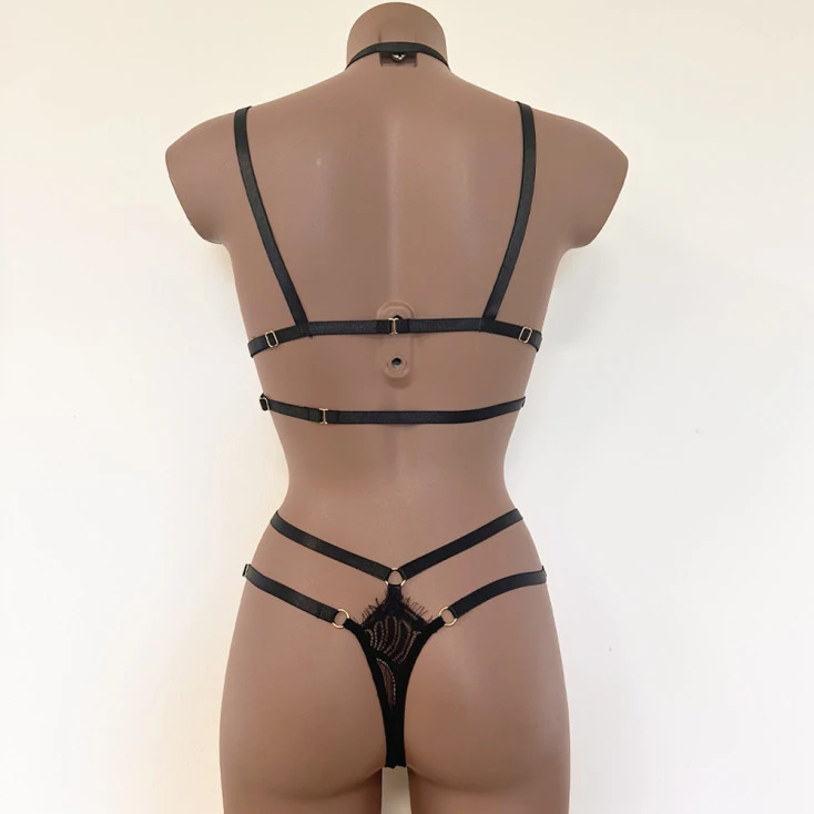 Entièrement ajustable grâce à des boucles de réglage dorées, l’ensemble de lingerie bondage 3 pièces assure un porté confortable tout en illuminant la peau nue.