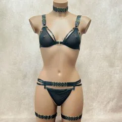 Résolument provocant, cet ensemble de lingerie de charme composé de 4 pièces, dévoile vos intentions soft-bondage assumées.