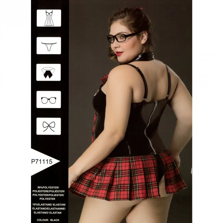 Le kit sexy est composé d’une mini-robe écossaise plissée dont le haut lacé est composé de wetlook sensuel.