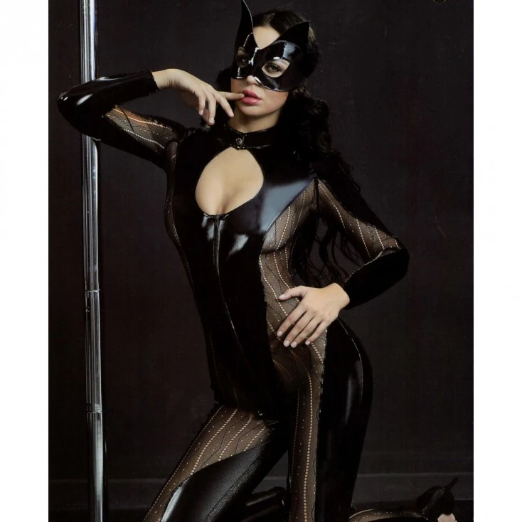 Le masque en wetlook avec oreilles de chat complète ce costume érotique et fait de vous la reine de la soirée.