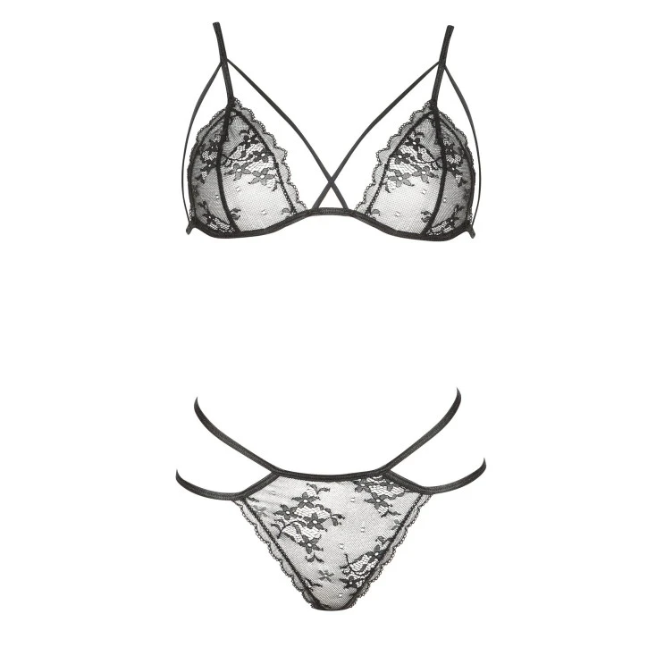 Des brides fines s’entrecroisent au creux des seins, comme une invitation aux caresses. Les bretelles réglables maintiennent le tout dans un ajustement parfait.