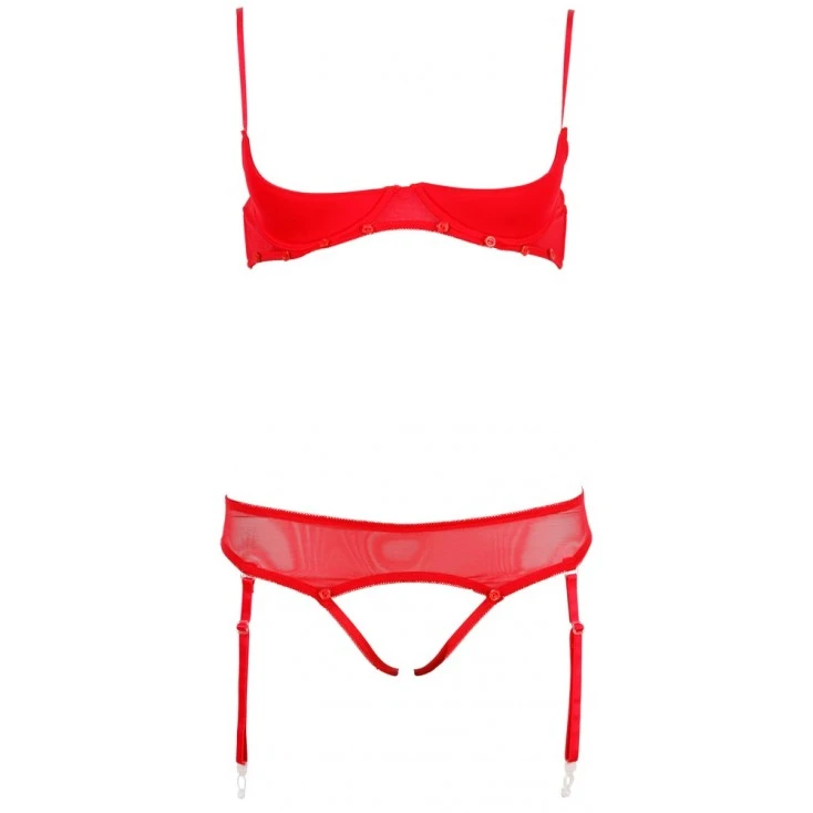 L’ensemble sexy deux pièces, rouge passion, laisse vos envies coquines prendre le dessus et transformer en lingerie érotique votre panoplie à la sagesse apparente.