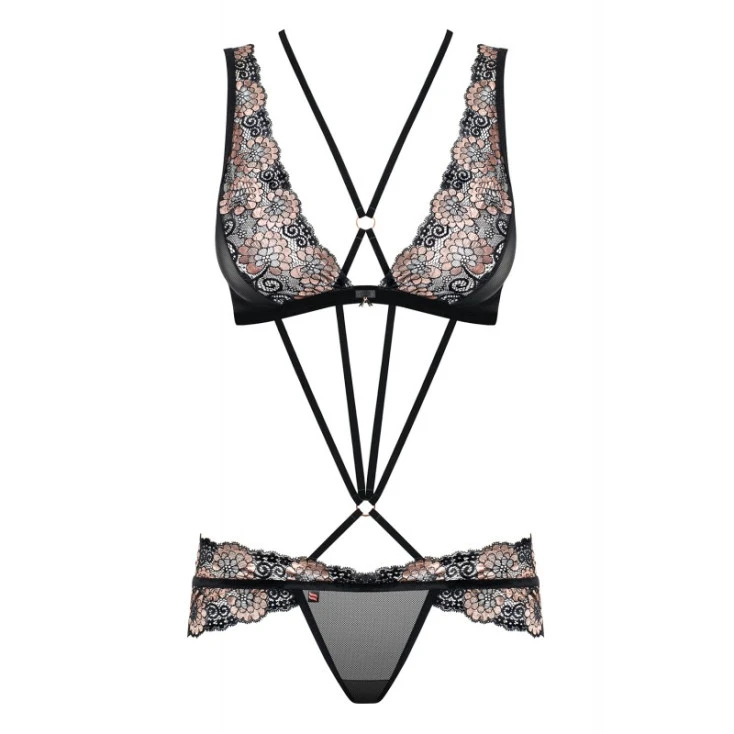 À mi-chemin entre la provocation et l’élégance, l’ensemble de lingerie érotique propose une dernière pièce sophistiquée et torride à la fois, sous la forme d’un jeu de brides amovibles. En l’attachant aux anneaux dorés, ce dernier vous permettra de varier les plaisirs en passant du 2 pièces classique à un body harnais magnifique et affriolant.