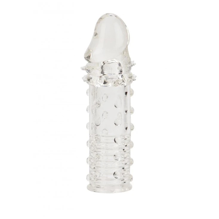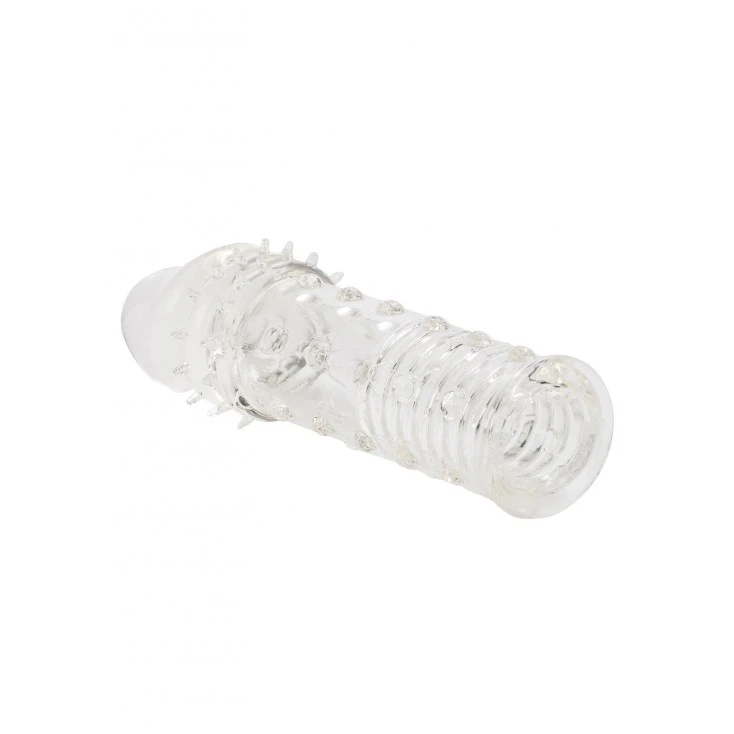 Gagnez 5 centimètres d’extase et exacerbez les sensations grâce aux reliefs à picots de la gaine de verge ‘Adonis Extension’.
