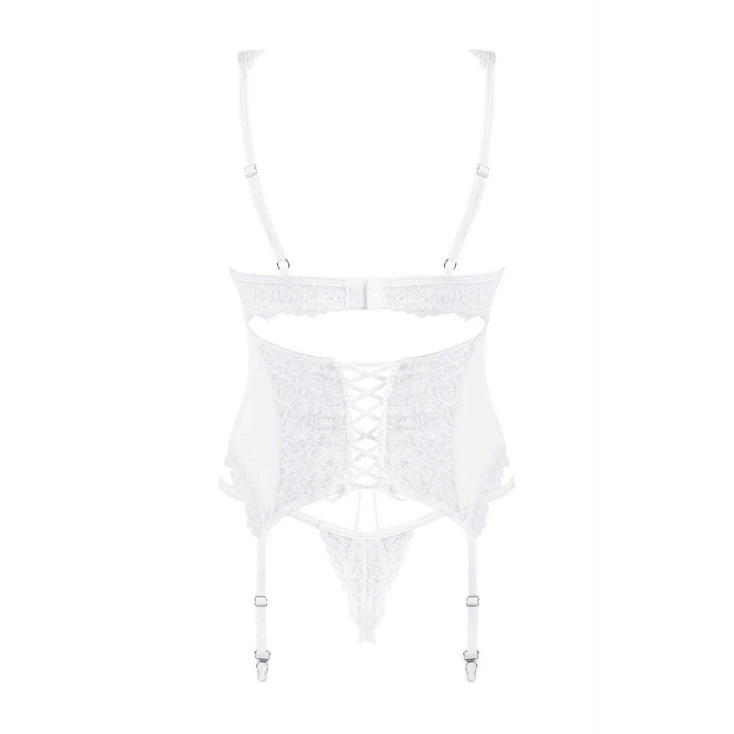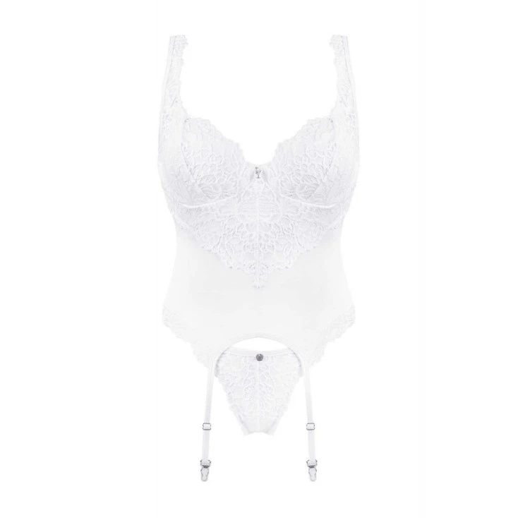 Confectionnée dans une dentelle florale raffinée, la guêpière irrésistible arbore une couleur blanche lumineuse pour couvrir la silhouette d’une sensualité pure.