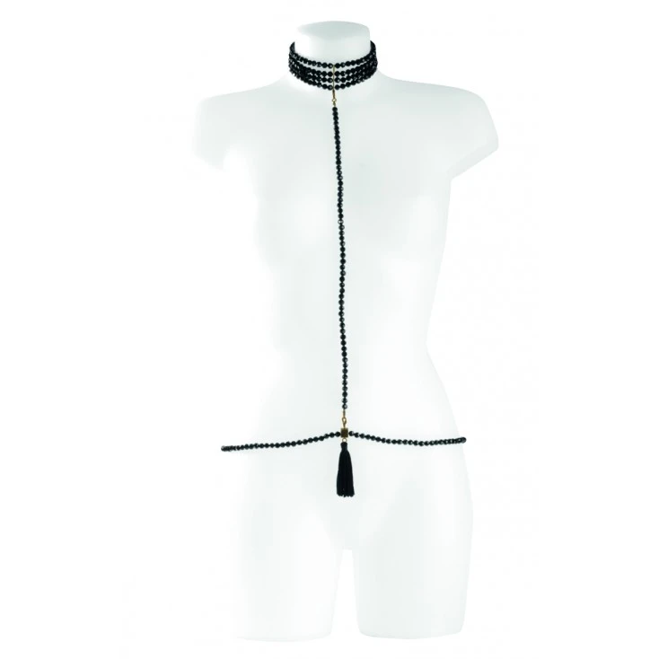 Ce bijou 3 en 1 est indispensable à votre garde-robe ! Composé d’un collier ras-de-cou et d’une chaîne de taille, chacun réglable à l’aide d’une chainette, il est relié par un lien en perle de Jais amovible afin de ne faire qu’un seul et même accessoire. Ainsi vous pouvez le porter de 3 manières différentes. Il saura sublimer et compléter vos tenues avec élégance.