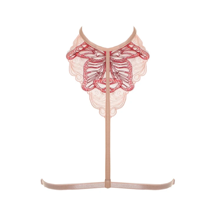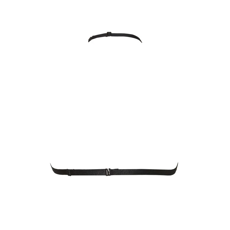 Les brides satinées du harnais sexy enlacent le tour de cou, pour descendre le long de la silhouette dans une danse érotique des plus envoûtantes.