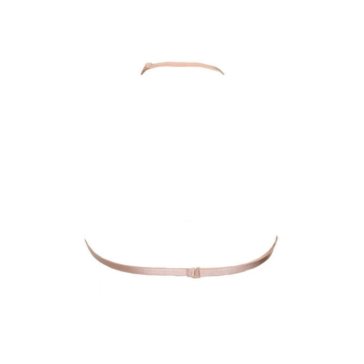 La bretelle fine contourne ensuite la silhouette pour venir sublimer la cambrure, tout en maintenant le collier irrésistible dans un ajustement parfait grâce à son attache au cou et sa boucle de réglage.