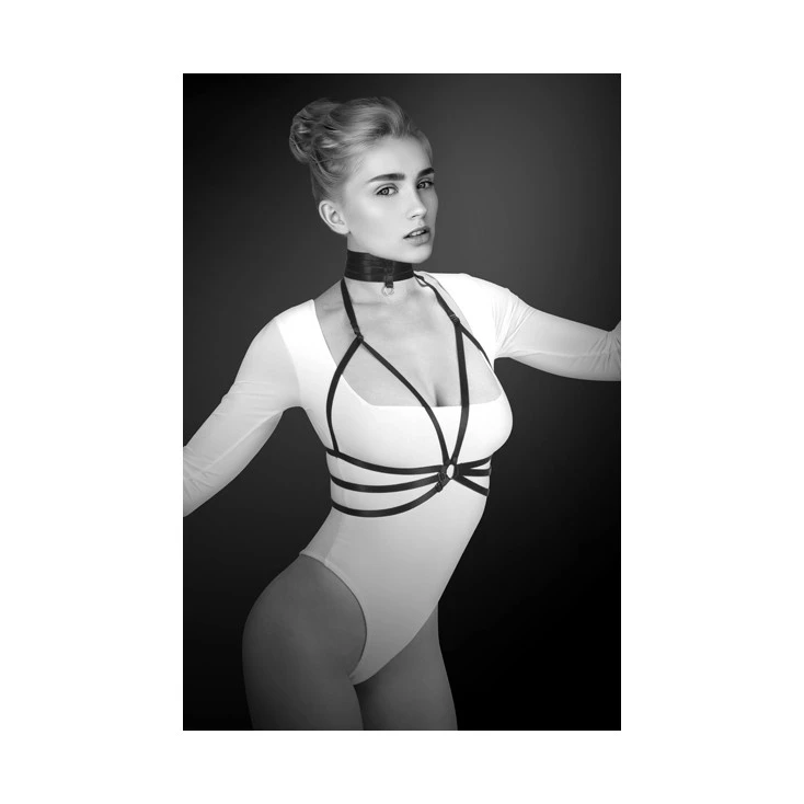 Le top harnais ‘Julia’ composé de brides extensibles emprunte au thème bondage les codes provocants et audacieux pour donner à voir un accessoire sexy affriolant.