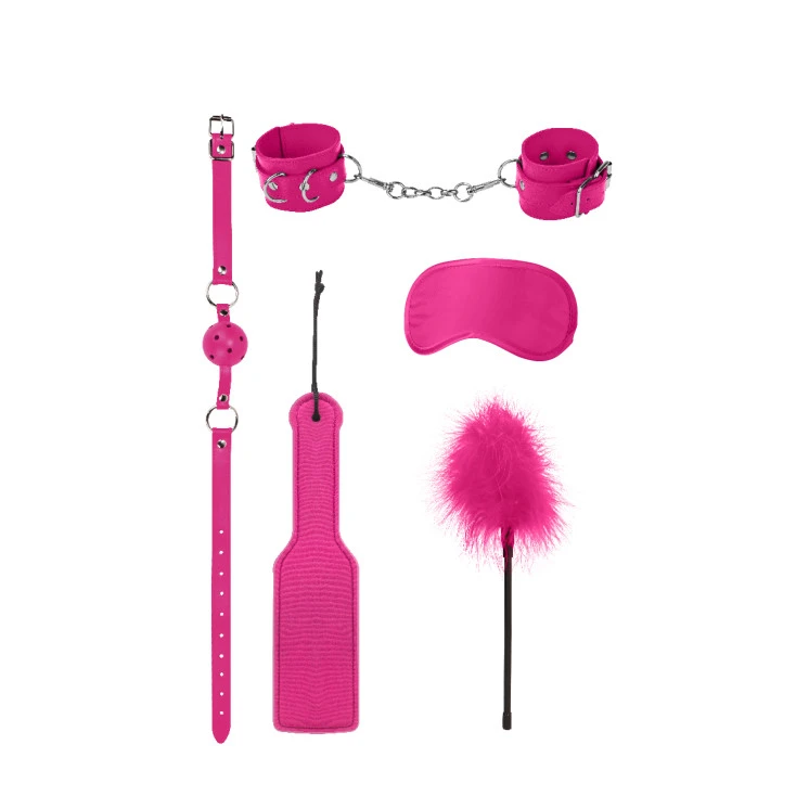 • Inclus dans le kit bondage soft pour débutants : une paire de menottes en cuir pour poignets ajustables, un masque opacifiant pour les yeux, un paddle, un bâillon respirant, un plumeau.