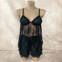 Ensemble Cuir Et Dentelle Soutien-Gorge Ouvert, Porte-Jarretelles Et String – Beauty Night