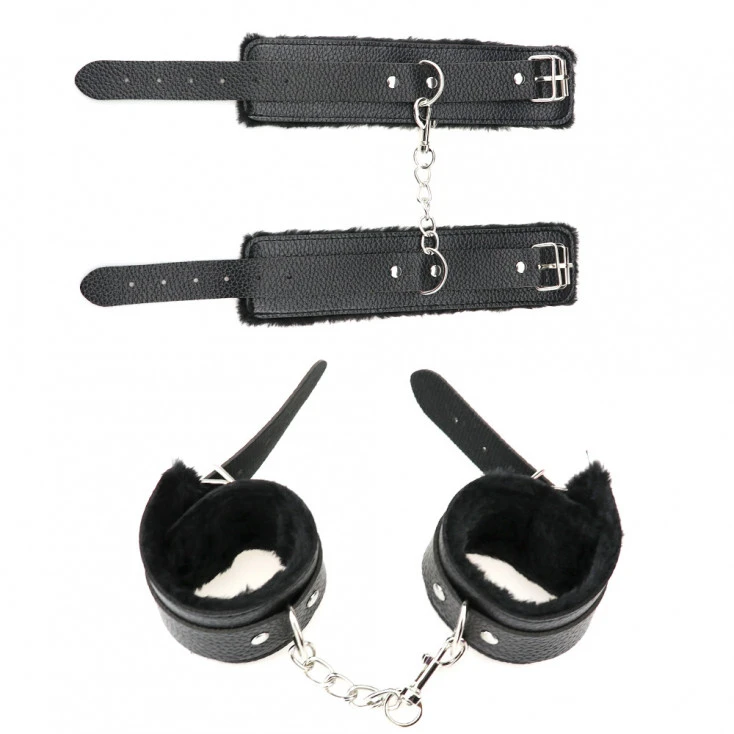 Découvrez un jeu de deux menottes sexy en simili texturé, doublées de fausse fourrure pelée.