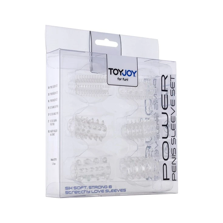 Power Penis Sleeve Set Clear est un ensemble de 6 gaines souples et extensibles de la marque ToyJoy.