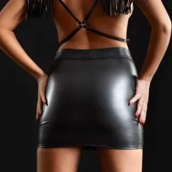 Mini Jupe Vinyle Ceinture Et Zip Dorés – Noir Handmade