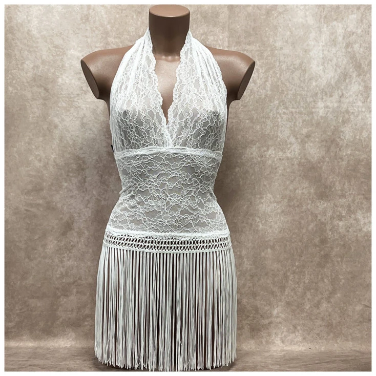 Des franges satinées dévoilent vos fesses au gré de vos mouvements pour une silhouette érotique saisissante.
