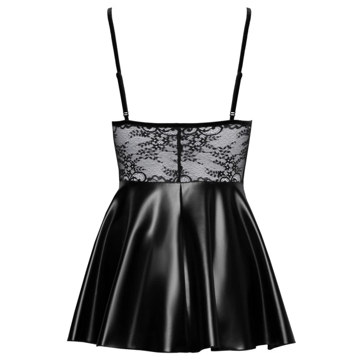 Pour vous octroyer un style très « rock » et terriblement sexy, la partie jupe de la pièce de charme arbore un wetlook à l’effet mouillé légèrement brillant.