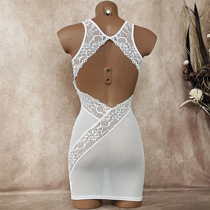 La cambrure du dos ainsi que les jambes se révèlent sous les découpes irrésistibles de cette robe audacieuse, dans un résultat plus que sublime. Portée seule ou sur une lingerie sexy, elle sera incontestablement un atout séduction lors de vos soirées coquines.