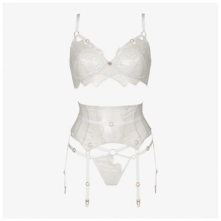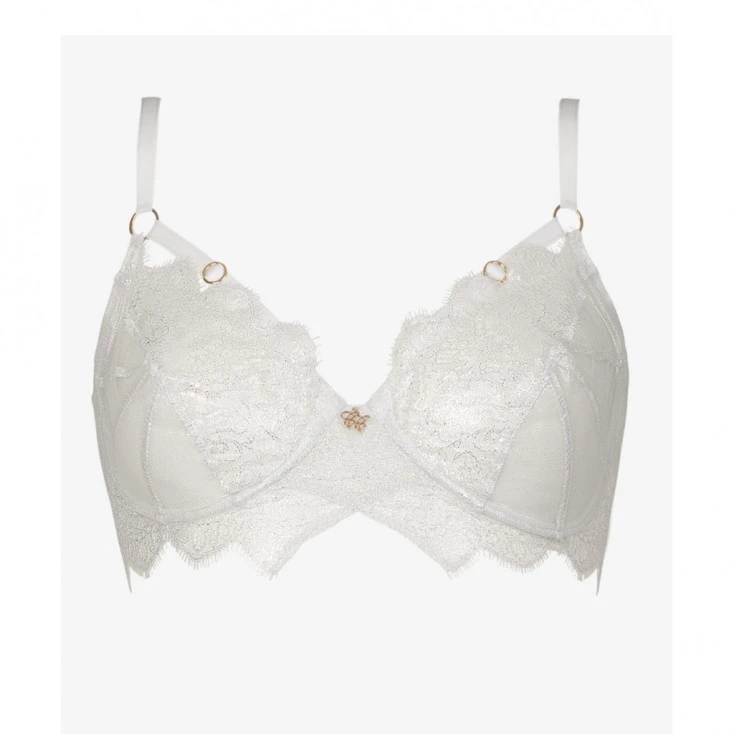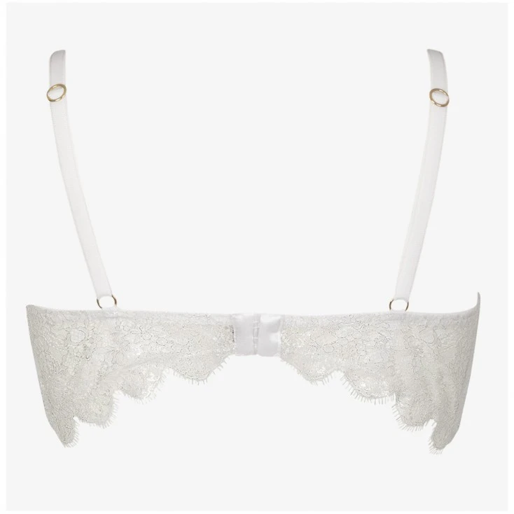 Avec sa forme balconnet, la lingerie fine offre un galbe naturel du plus bel effet; composé de dentelle brodée blanche en nylon et d’une résille polyamide extensible, le soutien-gorge sexy est enduit d’une fine couche argentée lumineuse.