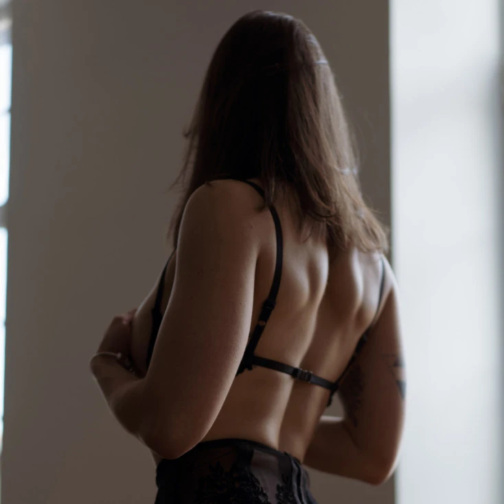 La poitrine parfaitement galbée se déploie dans un élan d’érotisme, soutenue par les armatures de cette pièce au charme captivant.