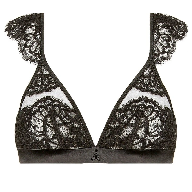 Création de la maison européenne Jolidon, ce petit bijou noir dévoile votre nudité avec sensualité grâce au jeu des transparences exigé par la dentelle à cils.