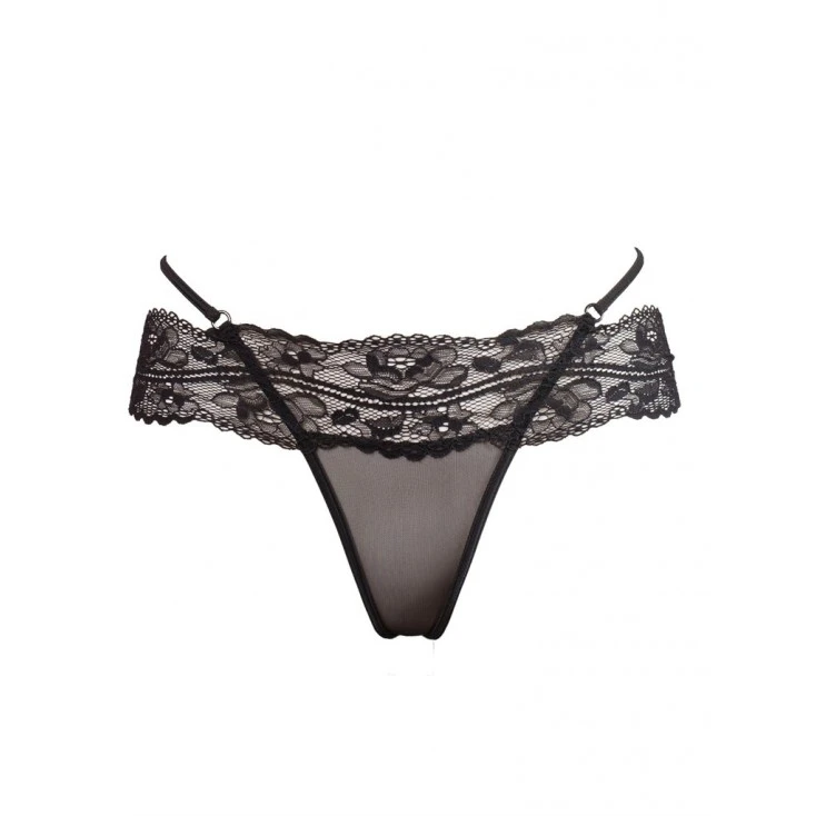 Un galon élégant confectionné dans une dentelle sensuelle et délicate vient enlacer le tour de hanches, pour en sublimer les contours avec grâce et érotisme.