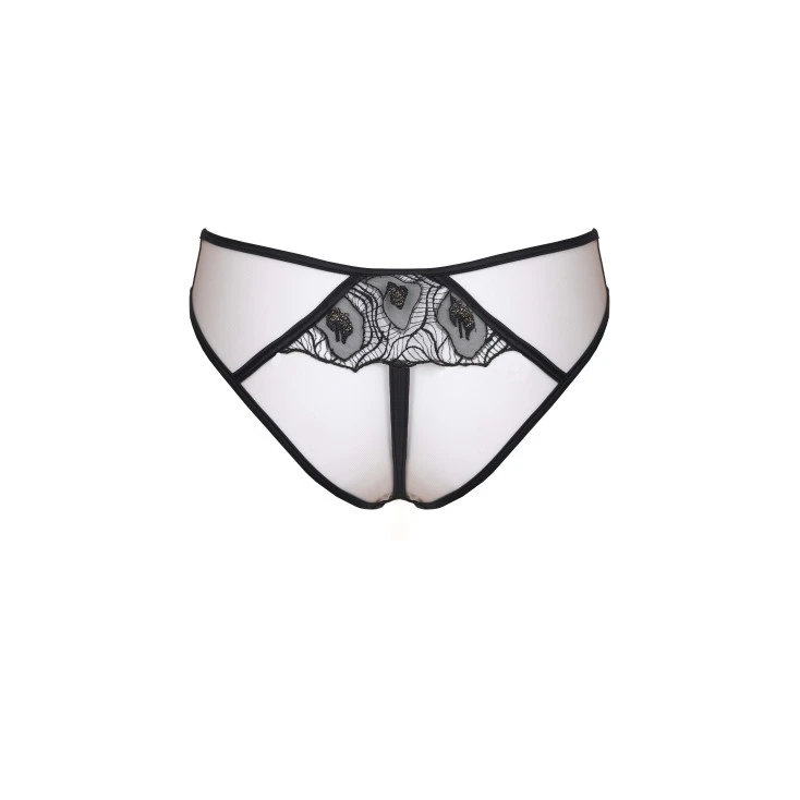 Raffinées et magnifiques, des broderies viennent voiler l’intimité et la chute des reins à l’arrière, dans un rendu visuel captivant de charme. Des fils dorés s’entremêlent harmonieusement aux motifs envoûtants, apportant ainsi une touche d’éclat et de brillance au dessous sexy.