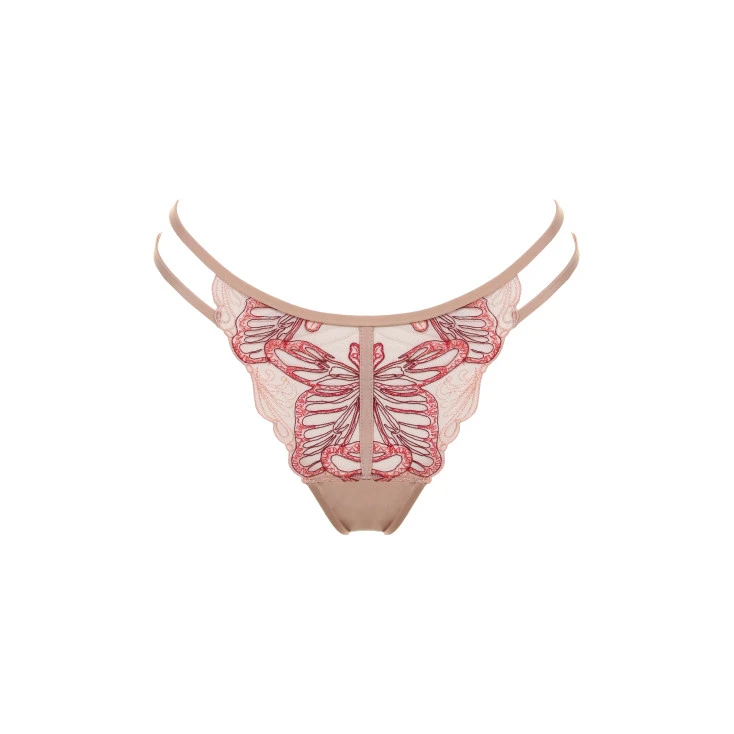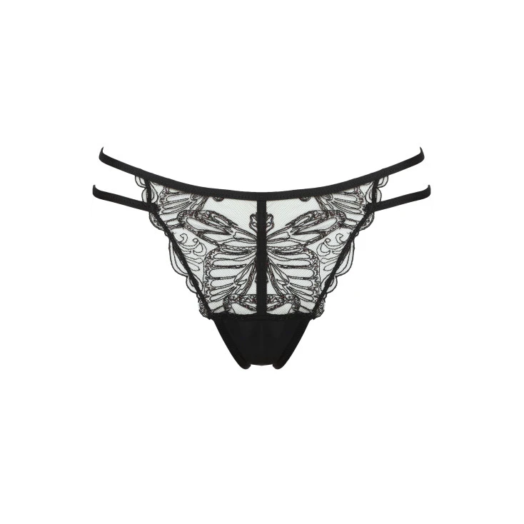 Un papillon soigneusement brodé vient poser ses ailes sur vos charmes, dans une invitation aux caresses sensuelles.
