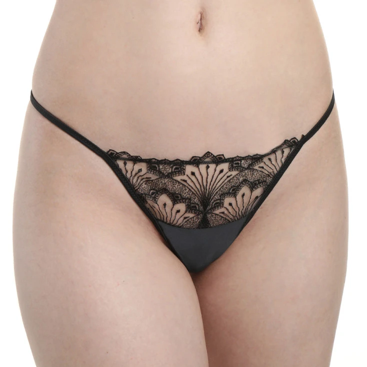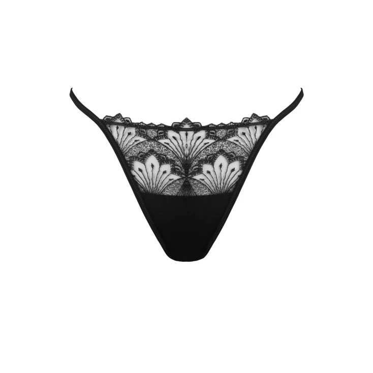 Faites-le succomber au premier regard, en adoptant la collection « Hôtel Désir » et ses découpes sensuelles. Le string confectionné par la Maison Jolidon arbore une transparence hautement irrésistible, recouverte de motifs floraux brodés et teintés d’un noir obscur séduisant.