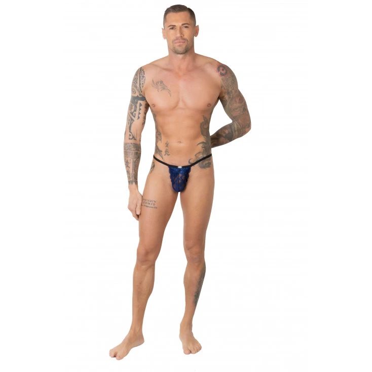 Ce string ficelle extrêmement sexy saura se poser avec grâce sur vos courbes masculines, en les voilant d’une dentelle bleue fine et exquise.