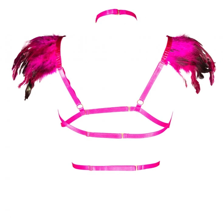 Composée de liens extensibles ajustables et de plumes naturelles colorées, la lingerie aux inspirations Fétish rend hommage à votre féminité.