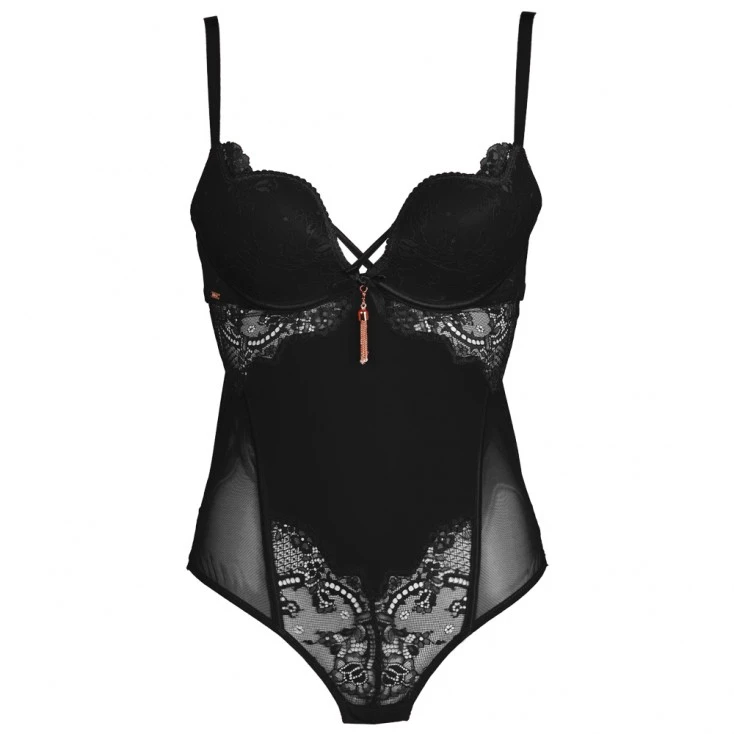 Ce body push up ultra glamour a été imaginé par la Maison de lingerie française Valège, afin de compléter la ligne Folamour.